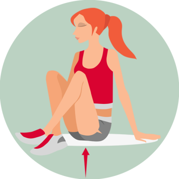 Leh na zádech, pokrčit kolena. Chodidla zůstávají na podložce. Tahem nadzvednout pánev. Zatnout svaly břicha, konečníku, pochvy a močové trubice. Chvíli vydržet. Pak povolit.