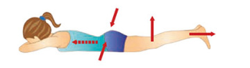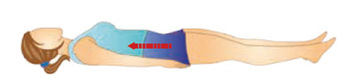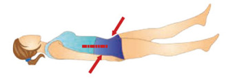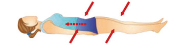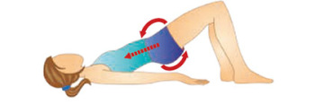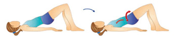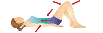 Leh na zádech, ruce podél těla. Nohy pokrčené v kolenou, chodidla zůstávají na podlaze. Nadzvednout pánev a hýždě. Stáhnout svaly břicha, konečníku a pochvy. Pánví pohybujeme nahoru a dolů (třikrát). Pak povolit.